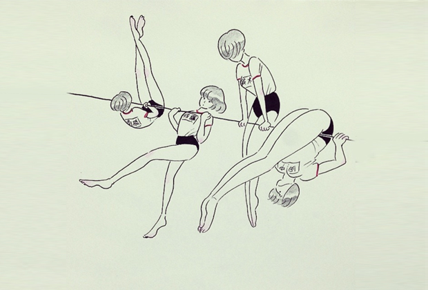 本展では”たいいく”をテーマに、彼女の描くおんなのこたちが、運動会を繰り広げる。ひっぱったり、まわったり、走ったり、きっと、たいいくが得意な子も苦手な子も様々、奔放にキャンバスの中を動き回っていることだろう。