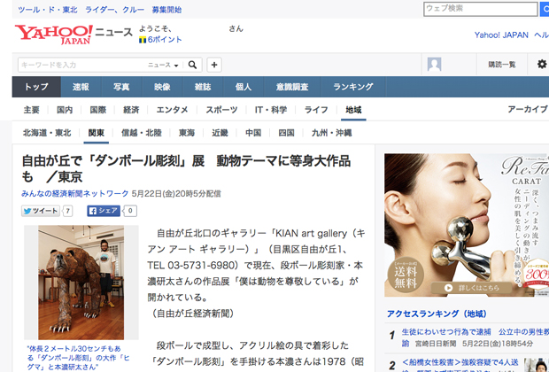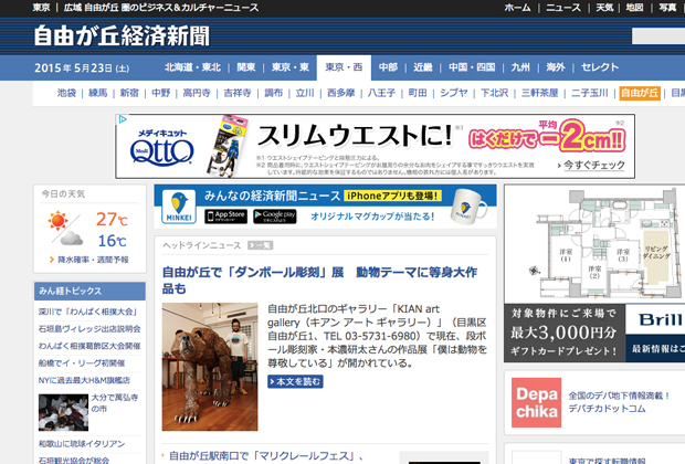 自由が丘経済新聞さまと、Yahooニュースさまに展示会情報をご掲載頂きました!