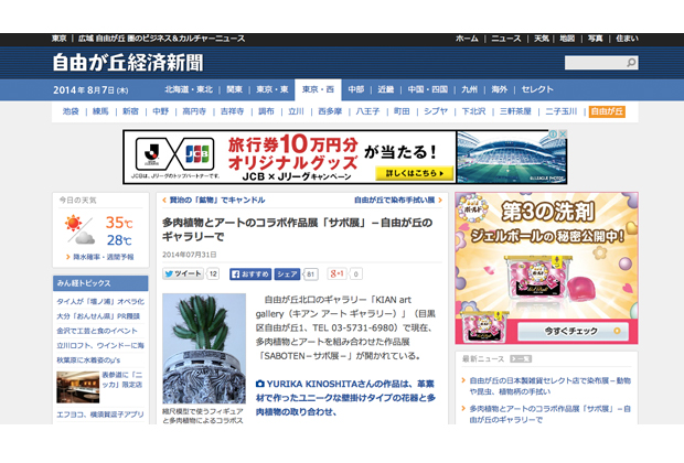 自由が丘経済新聞さんにSABOTENについての記事を掲載していただきました!!